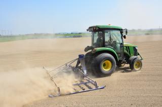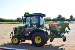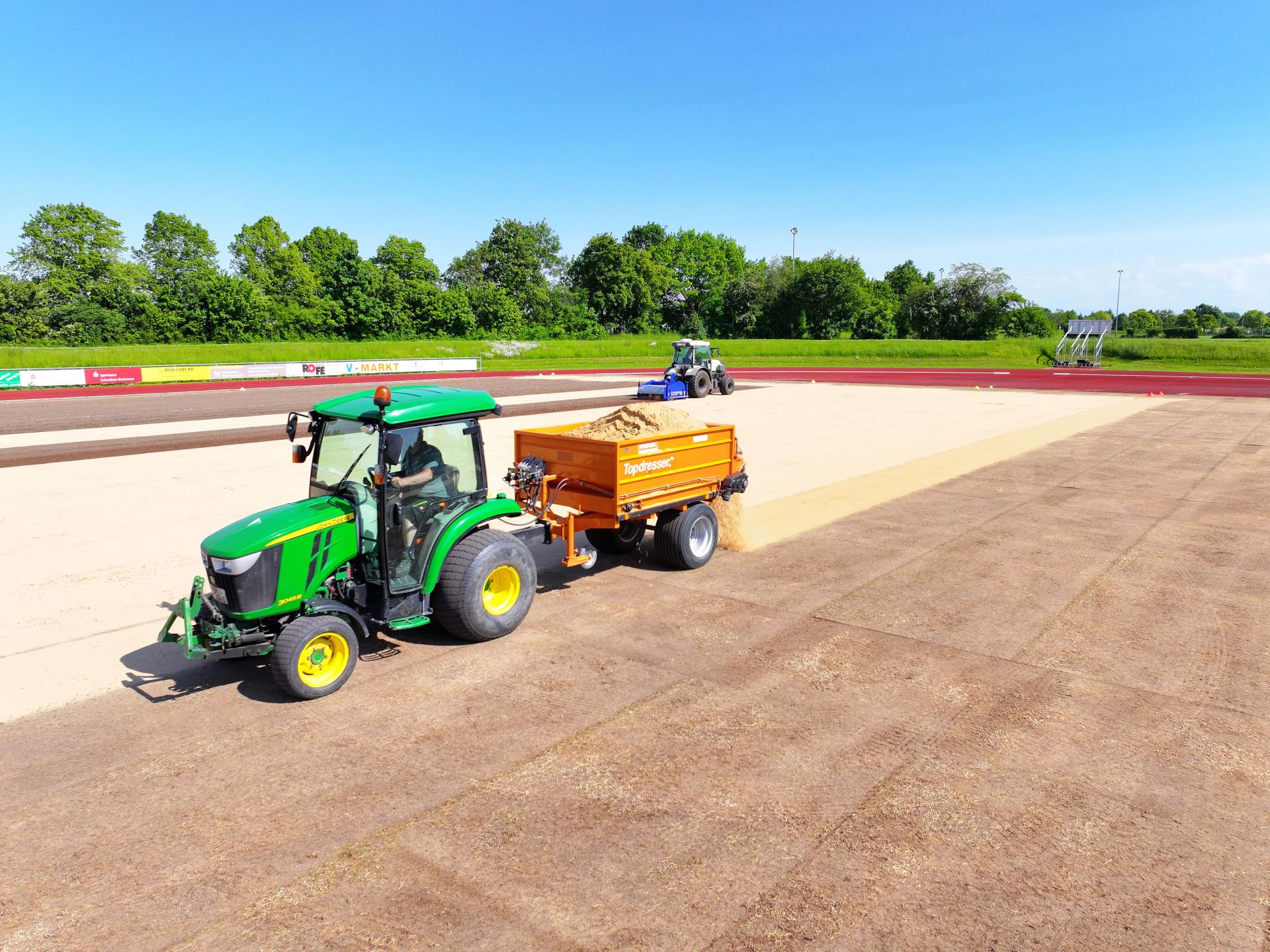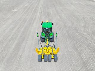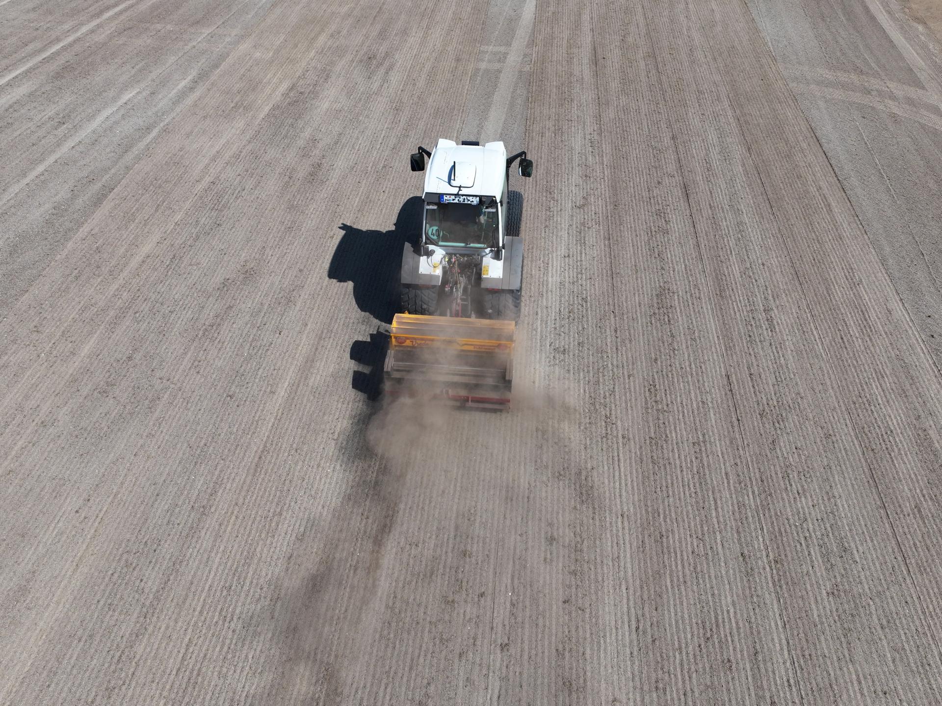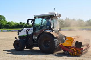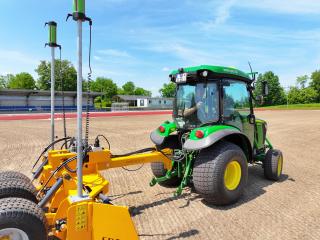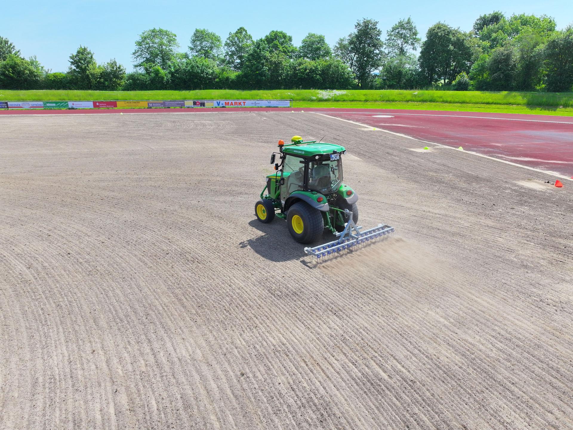 Anschließend wird der Boden mit einem Präzisionsstriegel bearbeitet, um eine gute Vermischung der verschiedenen Materialien zu erreichen. Nach Ausbringen der Grunddüngung wird die Rasentragschicht und der Sand nochmals vermischt und anschließend die Feinplanie hergestellt. Bei der Startdüngung ist es wichtig, ein ausgewogenes Verhältnis zwischen kurzfristig verfügbaren Nährstoffen und langanhaltendem Dünger zu erreichen. Durch hochwertige Dünger mit einer exakten Verteilung der Haupt- und Spurennährstoffe stehen den Pflanzen die benötigten Nährstoffe in ausreichender Menge zur Verfügung.